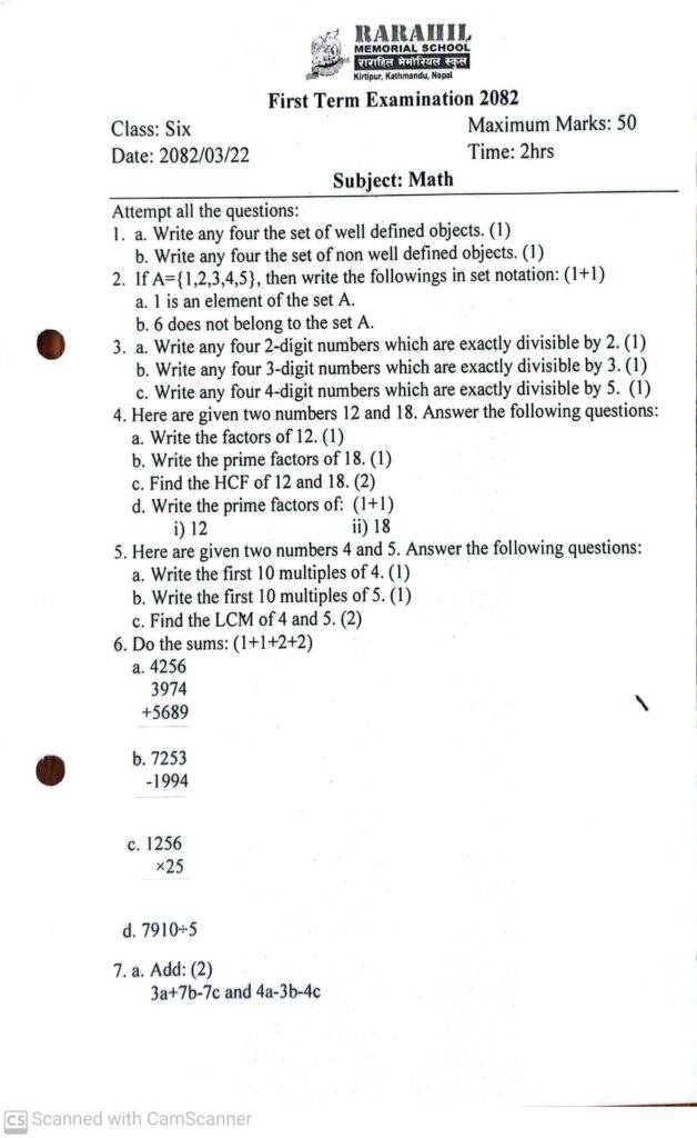 Question For First Term